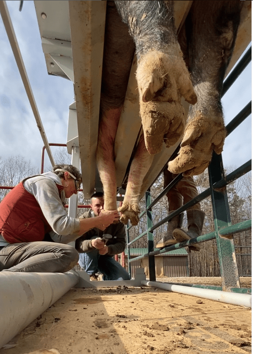 With so many pigs on the property, one of our biggest expenses is the 2.5-3.5 TONS of food our residents consume weekly. The amount we need fluctuates based on what Mother Nature provides the residents on our pastures, which we seed each year based on their nutritional needs.