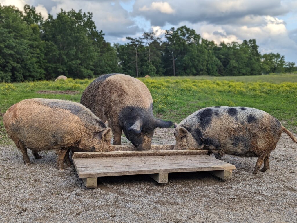 It takes a lot to keep 161 pig residents thriving. Every week, we bring in about three tons of custom-blended pig pellets (roughly the weight of an adult Hippopotamus), delivered in bulk from our local mill to keep costs down and bellies full. This foundational grain is what fuels the daily life (AND drama!) in every neighborhood.