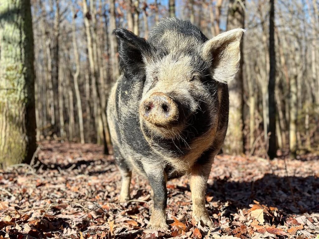 Jack is a mature male who lives in the Feral Neighborhood with his sister, Jill. Jack is a gregarious pig, always greeting visitors and sure to thoroughly scope out the scene for snacks–even if it means he needs to climb into the utility vehicle to complete his investigation! While Jack’s strengths may not include boundaries and personal space, he makes up for it with his sweetness and enthusiasm. If Jack is not busy greeting visitors, he can usually be found contently napping in a daybed in the woods behind his home.